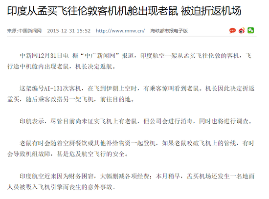 原标题:一只老鼠逼停一架客机!航司回应:第一次遇到