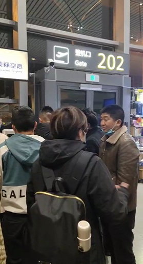 后面有人就喊有老鼠 ,工作人员看见了,因为他套着塑料袋抓老鼠,那个小老鼠在行李箱上。