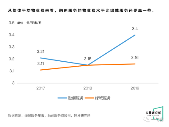 从融创服务的整体平均物业费来看,融创服务与绿城服务相当,甚至比绿城服务还要高一些。