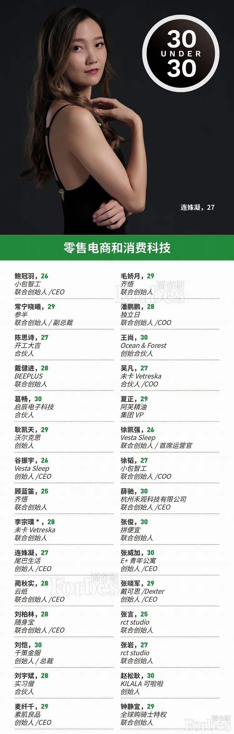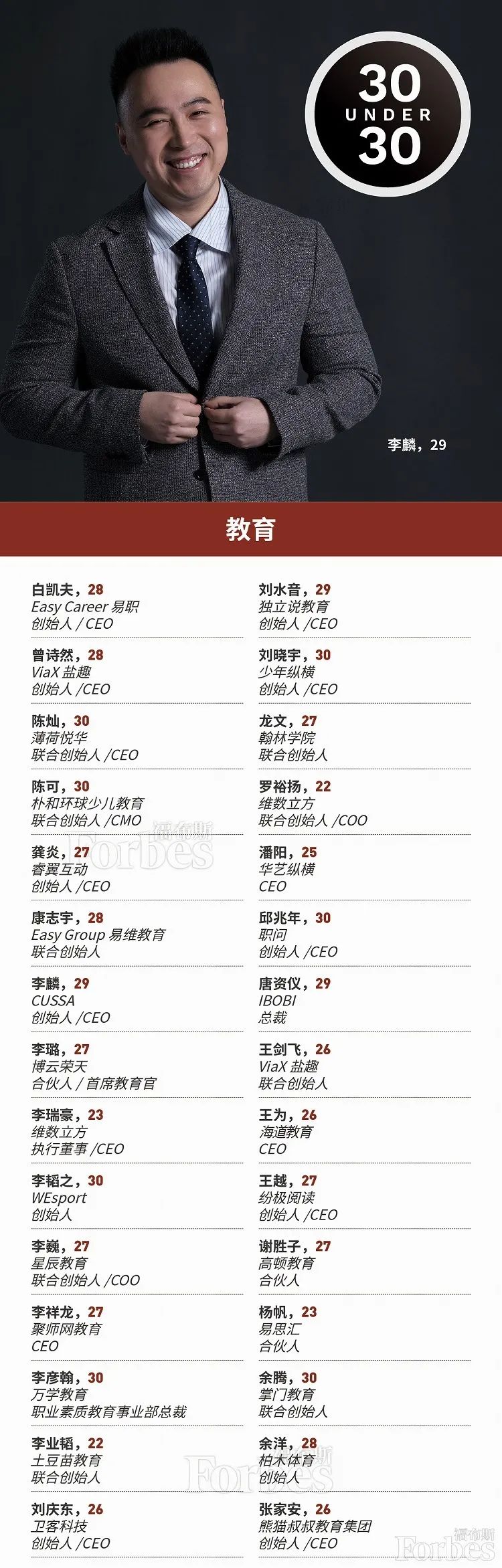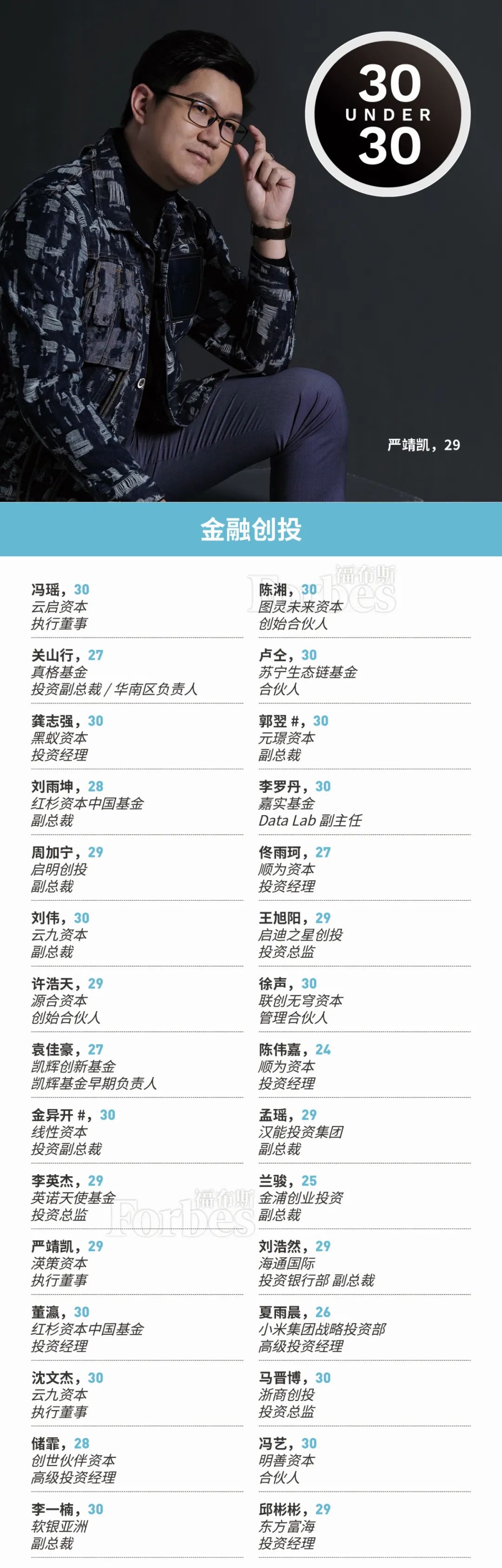 2020年11月9日,福布斯中国推出了最新的30岁以下精英榜(30 Under 30),并选出了300位30岁以下活跃在中国各个领域的优秀青年。