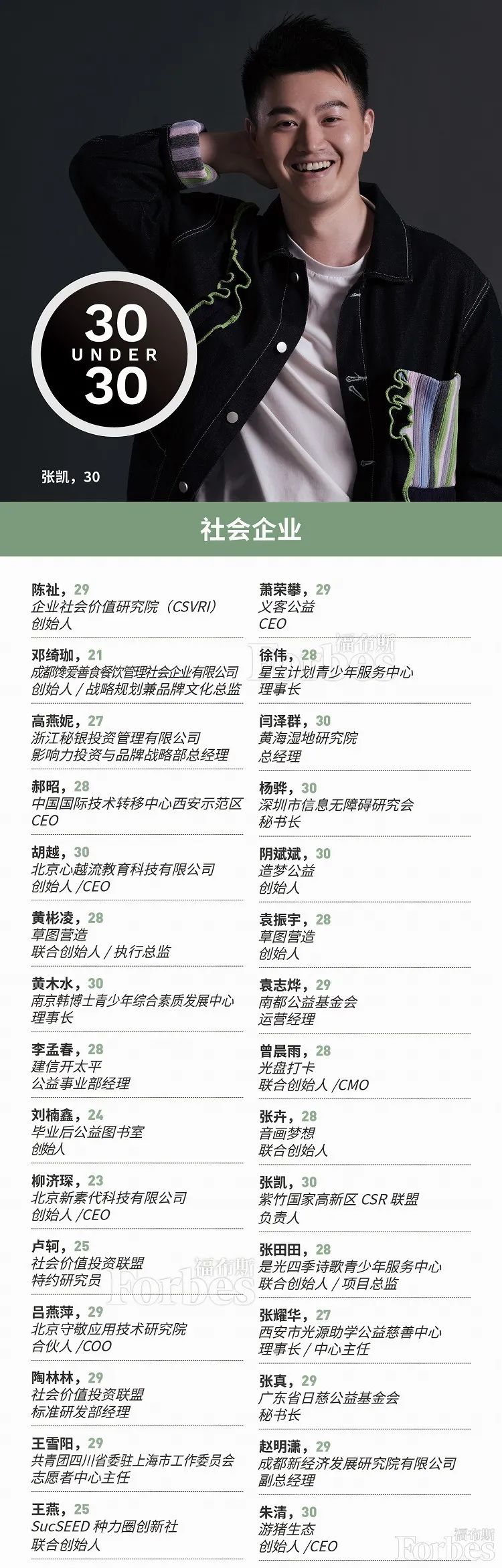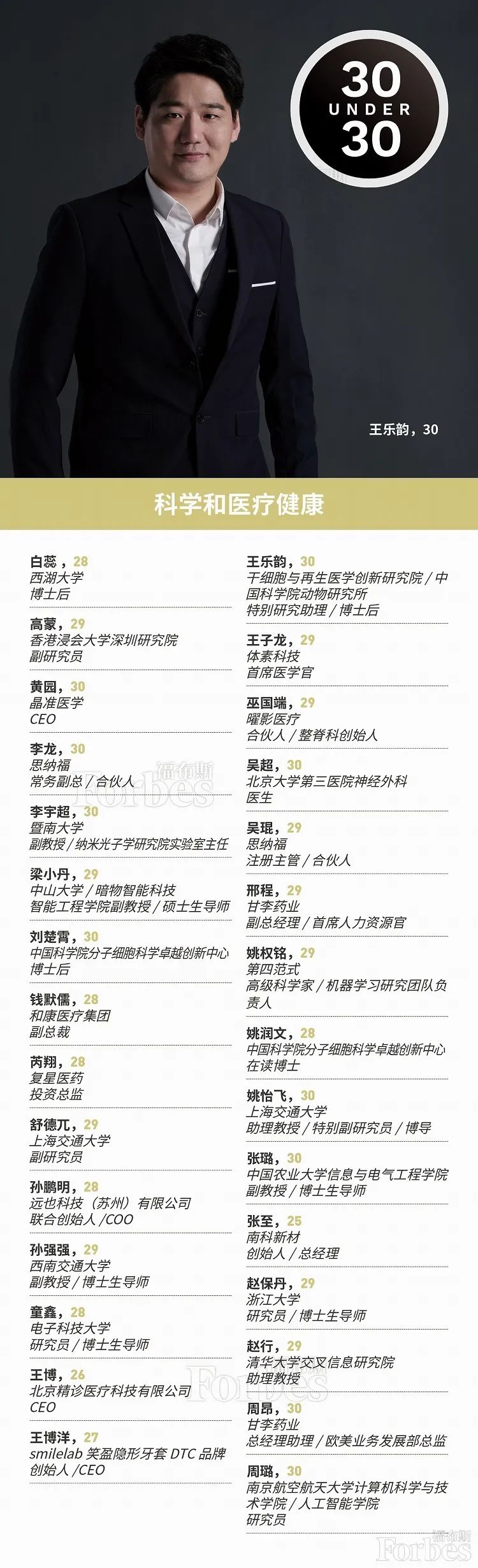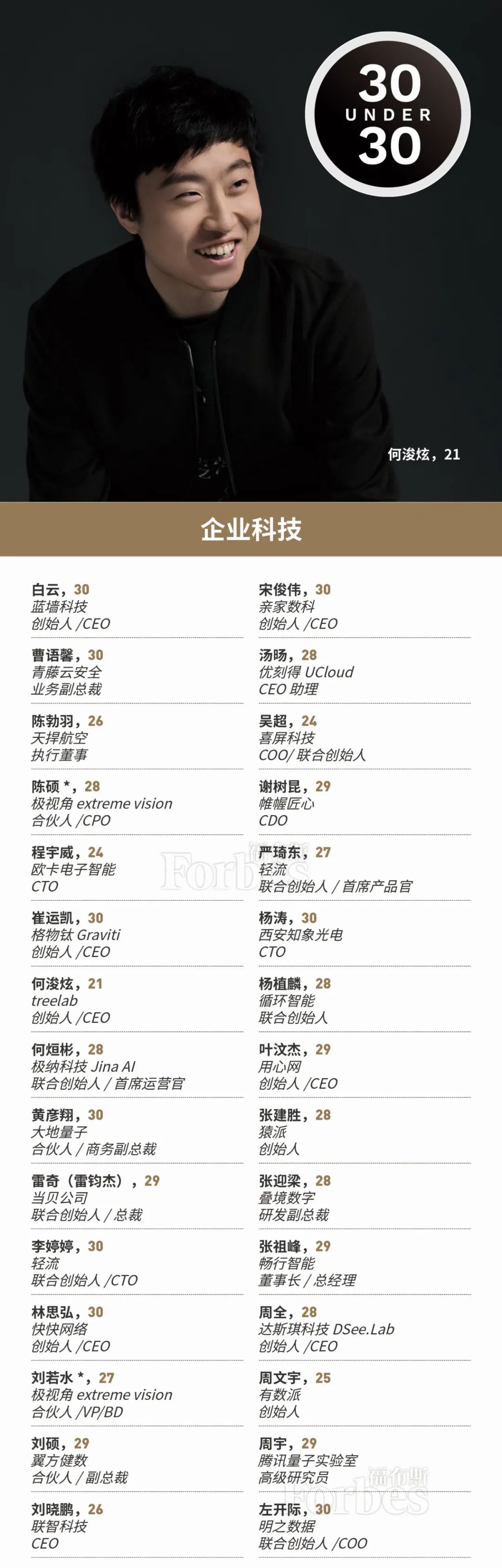 2020年11月9日,福布斯中国推出了最新的30岁以下精英榜(30 Under 30),并选出了300位30岁以下活跃在中国各个领域的优秀青年。