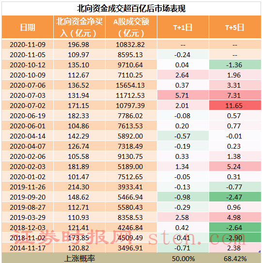 从历史数据来看,在北向资金大幅净流入后,市场上涨概率普遍较高,尤其是在北向资金持续大幅净流入的情况下,A股市场甚至能够掀起一波小牛行情。