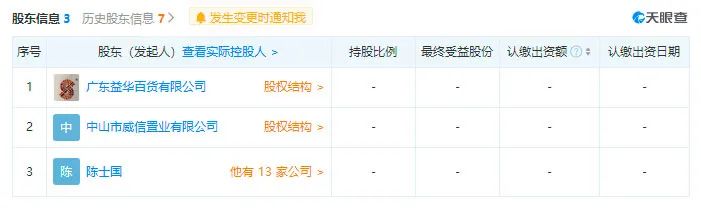 资料显示,广东益华百货有限公司由港股上市公司益华控股100%控股,该公司是陈健仁家族和上市公司百货业务最主要的持股平台。