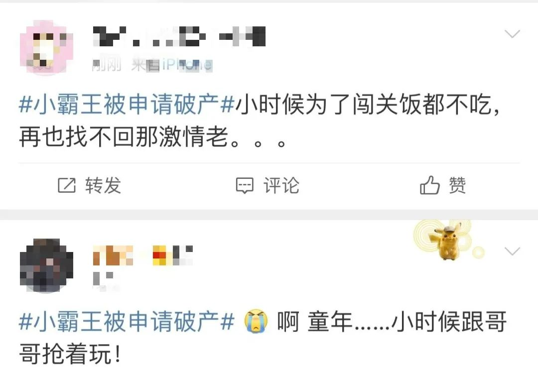 “小霸王被申请破产”的消息,“炸”出大批网友: