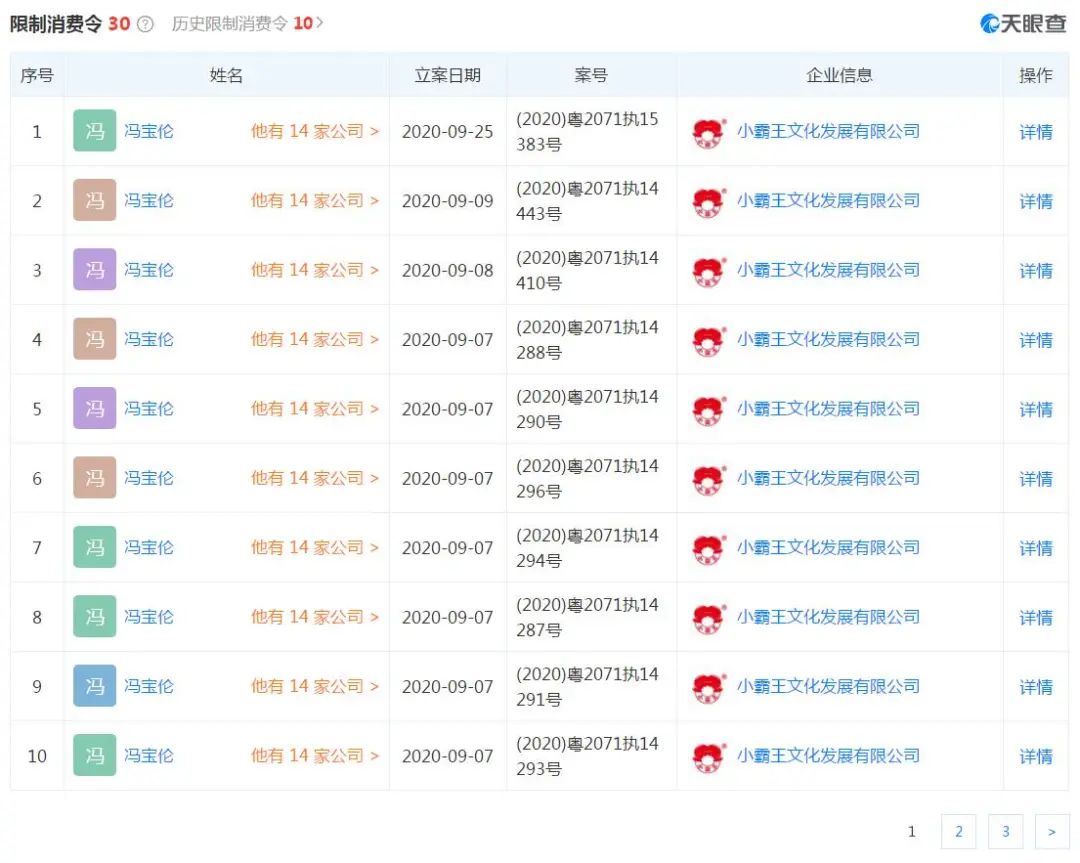 企查查显示,小霸王文化发展有限公司自今年3月开始,相关人员陆续被法院列为被执行人,至9月9日,共计有29条被执行人记录,执行法院均为中山市第一人民法院,金额合计1824.8万元。
