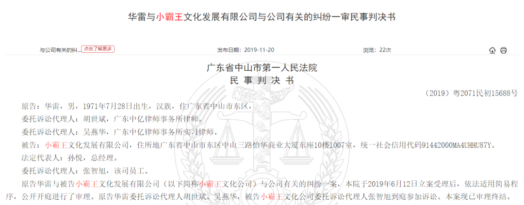 #小霸王被申请破产#的消息也迅速冲上了微博热搜榜。