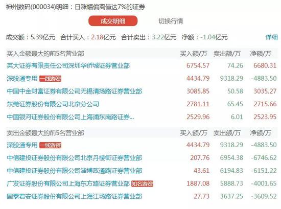 从今日神州数码的龙虎榜来看,深股通席位在做T,其买入4400多万元,同时卖出9300多万元。知名游资“著名刺客”所在的东莞证券北京分公司买入2700多万元。