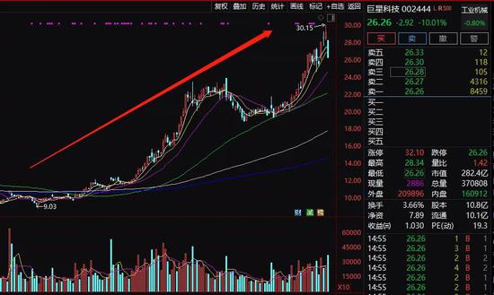 巨星科技也算是今年内的牛股,今年4月底最低跌至9.03元,而后快速拉升,今年11月5日股价最高达到30.15元,涨幅一度超200%。