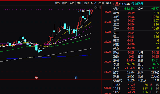 银行股是顺周期的典型代表,银行股龙头招商银行股价近期连续创出历史新高,A股今天收盘上涨1.44%,H股上涨2.48%,均创出历史新高,最新总市值11089亿元,超过农业银行的11086亿元,位居A股总市值第五位。