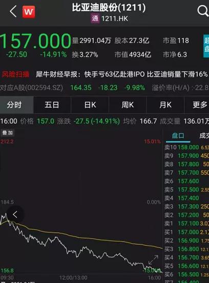 港股比亚迪股份也暴跌,收盘跌幅近15%。