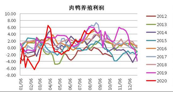 图:肉鸭养殖利润(单位:元/羽)