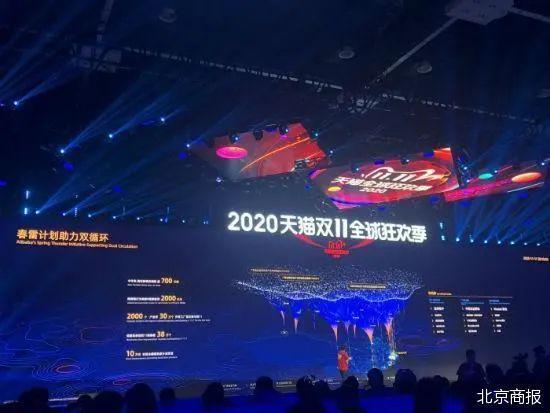 2020年11月11日,阿里在杭州的媒体中心大屏幕上,“双11”实时交易额的数据已经连续滚动24小时。尽管今年阿里将“双11”统计数据的时间维度拉长到了11天,大量数据难以与前几年直接对比,但每一个打断演出突然跳出的具有节点性质的数据,仍旧能引发欢呼与掌声。