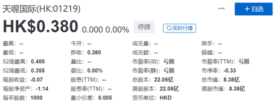 天喔国际于2013年9月17日在香港主板上市,发行5亿股,每股3.15港元,募资15.75亿港元。停牌时,天喔国际总市值达8.38亿港元。