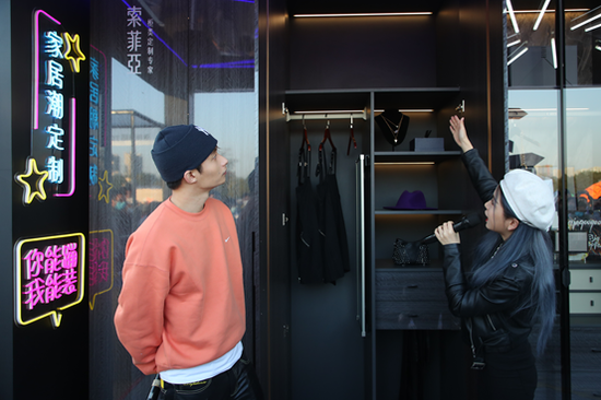 除快闪店外,中国新说唱季军李大奔的奔现,成为当天吸睛亮点。在这位当红音乐人的影响力下,快闪店早已被大批粉丝包围。李大奔在现场不仅实力演绎新歌《床地面沙发》,还畅谈新歌背后灵感来源于宅家生活。大奔分享喜欢个性化定制且独特的设计风格,在此基础上,还希望自己的家装可以融入潮流元素。索菲亚借助灯光、道具将星影系列产品打造成“宅男研究蹦迪索”,李大奔也表示眼前一亮。