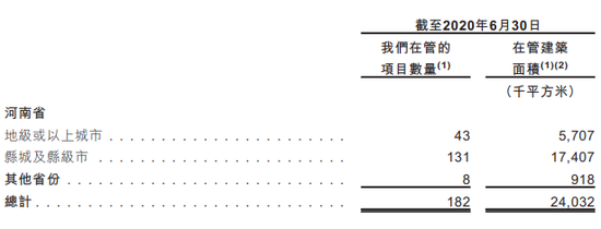 从项目分布来看,中原建业目前依然是深耕于大本营河南省。从2017年到2020上半年,公司自提供房地产代建服务产生收益及收取管理费,其主要由在河南省所管理的项目所贡献,分别占公司相关期间收益的100.0%、100.0%、99.4%及98.0%。