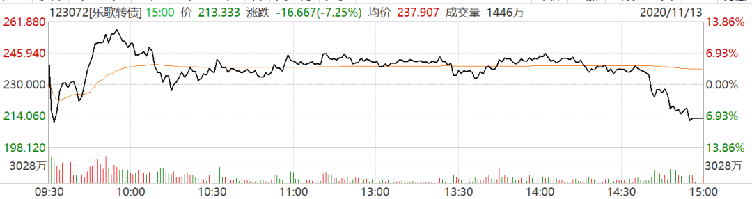 就在转债炒作苗头重现之时,连涨三天的乐歌转债终于“支撑不住”,13日跌逾7%。