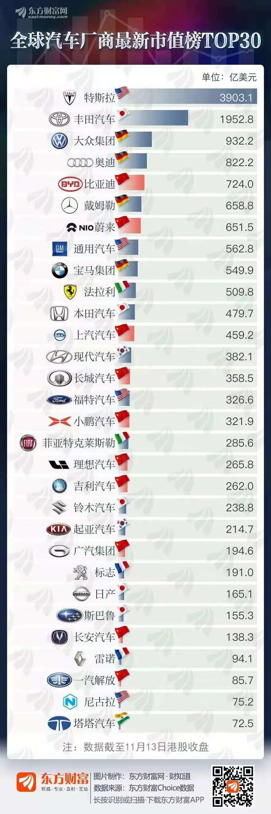 这几天有两张图刷屏了!一个是,特斯拉市值超过了丰田、大众、奥迪的总和;比亚迪超过了戴姆勒,蔚来市值超过了通用和宝马。另一个是,周五的美股市场成交额第一名首次变成中国新能源车企业蔚来。根据当日成交额统计,蔚来的成交额超过了亚马逊、苹果、微软散的科技巨头的总和。这两张图给人的直觉,不可谓不壮观。