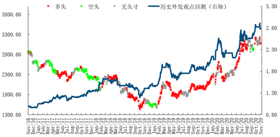 综上所述,上周市场呈现高开低走,指数在此前对“拜登牛”的过度乐观情绪中平复下来,并意外遭遇《平台经济反垄断法》及下半周的信用暴雷事件,指数回吐全周涨幅。基本面上,10月物价延续双回落,预计CPI此后仍将挑战0%水平,而PPI相对低位已探明后续将展开6个月快速回升;货币供应方面,M2增速再现回落,显示整体市场流动性仍在商业银行之外滞留,但我们认为此处难以出现显著紧缩政策;针对周末信用债事件,我们认为仍是个案而非全面爆发的开始,但由此引发的金融传染性问题值得密切跟踪如包商银行违约事件,事实上市场整体信用利差在今年下半年持续收窄,整体滞后于利率债市场,而企业债暴雷公司多数在此前2-3个月信用利差已持续扩大,并非突发事件,在康波周期萧条中,每一次经济阶段波动低点都会有传统企业的倒下,本次疫情叠加后使得2020年也变得异常艰难,对部分企业来说可能熬不过这个年末清算了,但更多企业还是“劫后重生”出现经营改善,疫后经济修复仍是过去6个月不争的事实,因此我们判断本次信用事件大概率不会对权益市场造成重大冲击,但展望2021年信用利差或将开启扩大态势,目前还在初期阶段,债券配置重申利率债长牛正式开启,再度重申回避信用债市场;技术面上,周一市场的冲高后劲不足,主因过早挑战箱体上轨,指数短期调整符合预期,箱体上轨仍有强阻力。主板择时建议:当前主板重回3100-3500箱体中上段,沪深300指数更是突破阶段新高,但我们对周期风格的持续性建议保持谨慎,实际经济数据已在更多维度出现弱势,下周一10月经济运行数据也可作为观察确认,指数上行趋势尚可建议维持高仓位不变。
