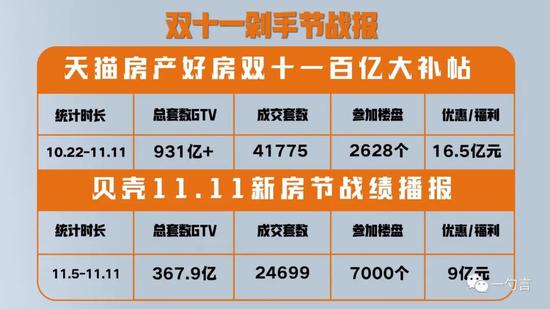 简单总结一下,天猫房产在22天的统计周期内,以4.2万套、931亿元的成交,暂时领先贝壳在7天统计周期内的2.5万套、368亿元战绩。