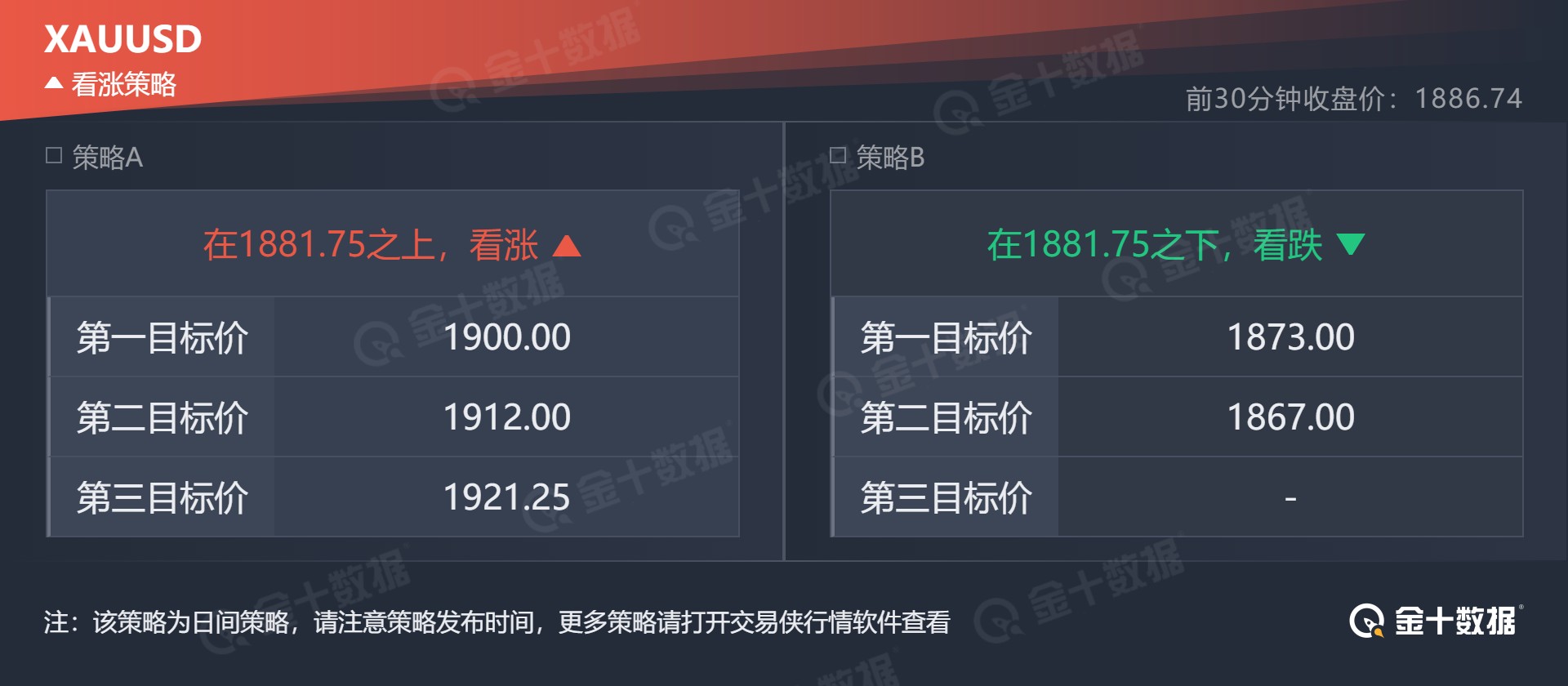 现货黄金多空转折在1881.75,若维持在此点位上方,或能上探1900、甚至1912。若回落至1881.75之下可转为看空,留意下方1873、1867支撑情况。