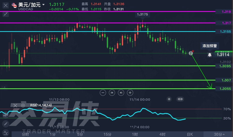 美元/加元在1.3155出现关键转折,此点位之下看跌,日内或跌至1.3095以及1.3070。若能上破1.3155可考虑看涨,上方阻力在1.3170-1.3190。