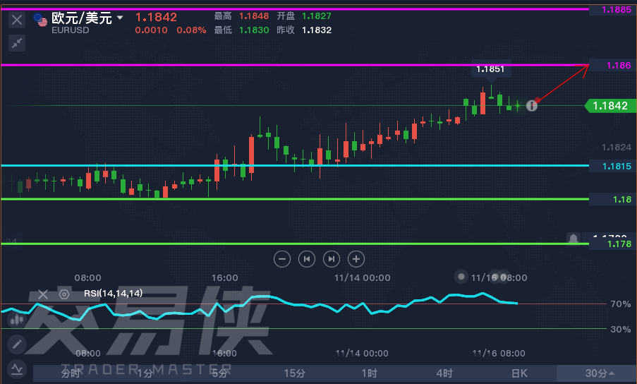 欧元/美元日内或保持上升趋势,多空转折在1.1815,在此之上有可能挑战1.1860,然后是1.1885。若无法守住1.1815,策略B为看空,留意下方1.1800及1.1780支撑情况。