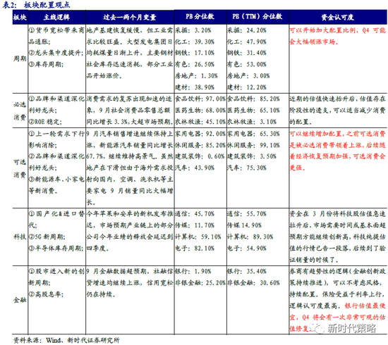配置主线探讨:当前时点与之前一个季度相比,对风格影响最大的变化在于:(1)尽管地产和基建“不太给力”,但工业生产和消费需求很旺盛,经济的内生动能正在被激发,复苏正扩散到可选消费领域。(2)海外订单回流为部分长时间处于周期低谷的行业带来了新的增量需求,在淡季展现出了异常的繁荣。一方面国内龙头公司凭借技术和产能优势将会收获更多的订单和利润,龙头价值风格将会继续强化并扩散。另一方面部分上游行业已经出现库存骤降的现象,我们认为这是下游需求旺盛的征兆。由此带来的补库效应叠加龙头的产能周期,将大概率带来经济年度级别的周期回升。(3)外资和公募等两类大资金不约而同地开始按照经济复苏的脉络做配置和布局。从上述三个方面来看,再结合各行业的估值情况,我们认为金融周期的比较优势较为明显,在临近年末的当下将会有更高的胜率。考虑到过去两年投资者对金融周期的预期压制得非常低,我们认为一旦基本面确认反转,ROE拐点出现,将会出现绝佳的反身性机会,可能会形成1-2个季度领涨的戴维斯双击行情。