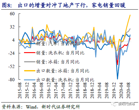 需求端来看,一部分国外的需求投射向国内,需求端的激增也带动消费需求的修复开始出现加速现象。之前消费的复苏主要靠必选消费拉动,复苏的斜率很小,但最近两个月可选消费也开始发力,经济的内生动能正在被激发。来自海外的增量需求对冲了地产下行的影响,再叠加国内的消费意愿回暖,带动汽车、部分家电的销量增速转正并创2018年以来的新高。