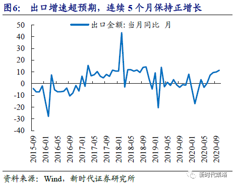 同时,大型发电集团日均耗煤量10月开始呈上升趋势,工业品价格经过一个月调整后也在10月份企稳,并重新开始回升。这些迹象也印证了工业生产需求在持续上涨,尽管数据可能会有月度波动,但经济始终是处于复苏的通道中的。按照周期理论,本轮经济上行至少要持续到2021年中,目前时间上还远远不够。