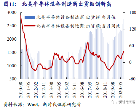 这种情况也出现在成长板块的部分细分行业中,这些行业也同样受益于国内消费和工业需求的回升以及海外需求的转移,所以本质上其实还是顺周期复苏的逻辑。比如由于海外市场的供需缺口,面板供不应求。同时国内消费需求转暖,下游厂商积极备货,6月以来面板报价持续上升。另外受工业需求转暖、汽车行业复苏以及诸多下游需求爆发的影响,半导体行业产销两旺,北美半导体设备制造商出货额创出新高,8寸晶圆功率半导体满产,维持高景气。