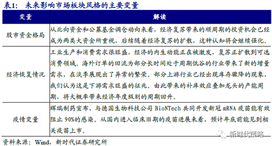 从10月份至今各板块的表现来看,A股表现出明显的“顺周期交易”的特征,风格切换已经悄然发生。展望未来一到两个季度,我们认为市场可能大致存在三条主线:(1)受益于经济复苏的顺周期主线。如化工、有色、机械、银行、汽车等以金融周期为主的行业。(2)受益于疫情消失的主线。如机场、航空、酒店等在疫情中遭受巨大打击,行业修复依赖线下消费场景放开的行业。(3)低估值补涨主线。如房地产等基本面受到压制,估值处于历史低位,在市场估值中枢抬升时有补涨机会的行业。