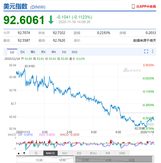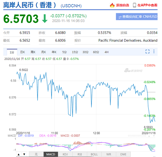 热点栏目11月16日,美元指数持续走弱,离岸人民币升破6.57关口,在岸人民币升破6.58。