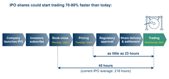 可节省70%至80%的时间,截止认购至上市时间约45小时