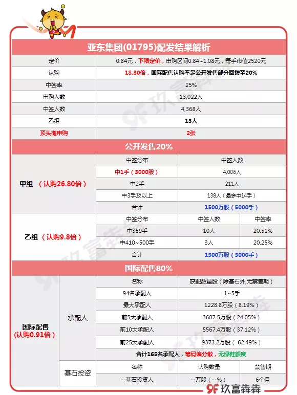 回拨后甲乙组各5000手,合计4,368人中签,每手市值2520元。
