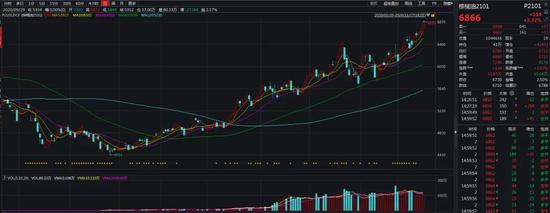 热点栏目近期,受USDA以及MPOB两大报告公布的影响,整个油脂市场再度火热起来,而此轮突破打头阵依旧是棕榈油,在外盘马棕榈油一局冲破8年高点的强势带领下,国内连棕价格接连上涨正式一局击穿年初高点,今日连棕主力01报收6866,上涨156,涨幅为2.32%。那么棕榈油频频上涨经久不衰的背后到底是何原因呢?未来的棕榈油还能否再创奇迹朝着梦想的价位更进一步呢?