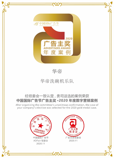 《华帝洗碗机乐队》营销案例荣获中国国际广告节广告主奖-2020年度数字营销案例