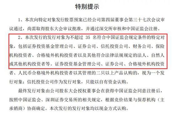 苏大维格公告显示:“本次发行的发行对象为不超过35名符合中国证监会规定条件的特定对象,包括证券投资基金管理公司、证券公司、信托投资公司、财务公司、保险机构投资者、合格境外机构投资者以及其他符合法律法规规定的法人、自然人或其他机构投资者等。最终发行对象由公司股东大会授权董事会在获得中国证监会同意注册后,按照中国证监会、深圳证券交易所的相关规定,根据竞价结果与保荐机构(主承销商)协商确定。本次发行的发行对象均以现金方式认购。”而包括深创投制造业转型升级新材料基金在内的3名原特定发行对象已不见踪影。
