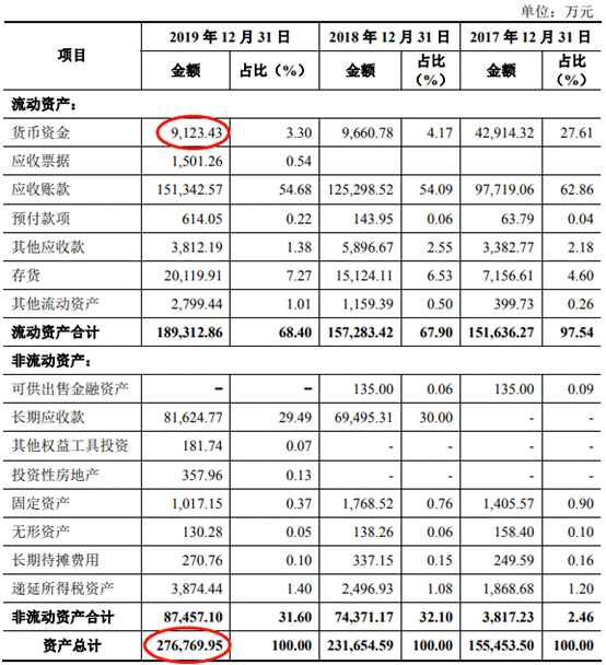 2017年-2019年,正和生态资产总计分别为15.55亿元、23.17亿元、27.68亿元。其中流动资产分别为15.16亿元、15.73亿元、18.93亿元,占比分别为97.54%、67.90%、68.40%。