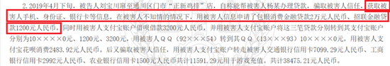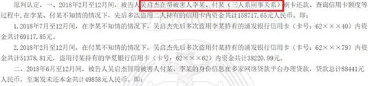 2020年5月,云南省普洱市法院一份判决书显示,2018年6月至12月间,被告人吴某冒用被害人付某、李某(三人系同事关系)的身份信息在多家网络贷款平台办理贷款16笔,贷款总计88441元人民币,至案发未还本金共计49858元人民币。