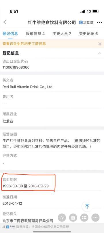 声明表示,“合资公司的合资合同、公司章程以及由相关审批及登记机关签发的一切有效批复、证照,包括批准设立合资企业的批复、外商投资企业批准证书、营业执照等,均明确显示合资公司的经营期限是20 年,且已于2018年9月29日到期而股东未予延期。严彬及其公司无视协议、法律规定、政府登记文件、股东意愿以及仲裁机构的生效裁决,公然在合资公司经营期限届满后继续违法生产、销售红牛产品,这无疑是对法律、对政府法律文件、对契约精神、对司法权威的肆意践踏。”记者从国家企业信用信息公示系统中获悉天丝医药保健有限公司所述经营情况基本吻合。