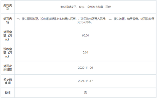 11月20日消息,国家外汇管理局广东省分局公布的行政处罚信息公开表显示,汇丰银行(中国)有限公司东莞分行因违反规定办理资本项目资金收付;违反外汇账户管理规定,被责令限期改正,没收违法所得441.60元,并处罚款合计达60万元。