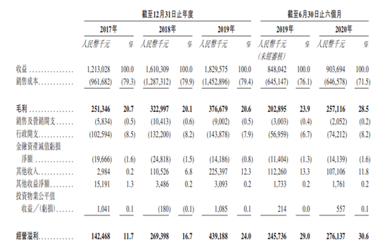 尤为一提的是,远洋服务的物业收费高于同行,2017-2019年以及2020上半年其就住宅社区所收取的每月平均物业管理费分别约为每平方米2.5元、2.4元、2.6元及2.6元,同期就商写物业所收取的平均物业管理费分别约为每月每平方米14.2元、15.9元、17.4元及17.3元。而在2019年,物管行业住宅物业和商写物业的平均物业费分别为2.1元和6.6元,意味当期远洋服务的商写物业平均收费相当于同行的2.6倍。
