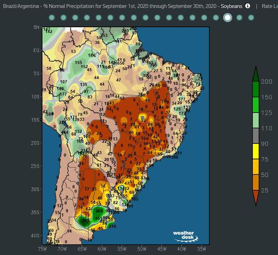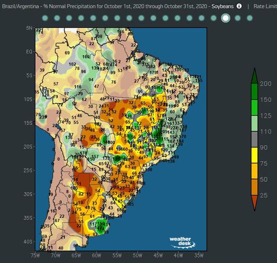 2、调整过后的美豆20/21年度库存消费比4.2%,上个月6.4%,历史偏低水平。全球大豆20/21年度库存消费比16.1%,上个月16.5%,历史偏低水平。全球大豆20/21年度库存消费比已经连续6个月持续降低,全球大豆供需紧平衡格局再度趋紧,未来库存消费比仍有望继续下调,暴涨之后美豆逢低买的格局不变。今年四季度以来,巴西南里奥格兰德、乌拉圭以及阿根廷中部产区降雨持续偏少,是拉尼娜状态下的典型天气模式,未来该地区延续降雨偏少的概率较大,有望支撑美豆持续走强,并带动国内豆粕继续走高。
