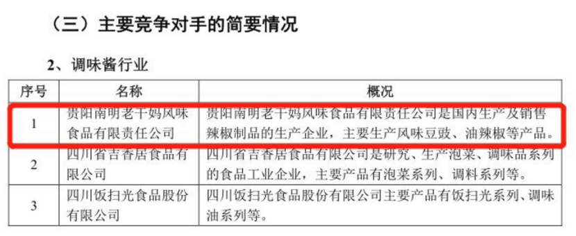 仲景食品在招股书中更是将老干妈列为最大的竞争对手。