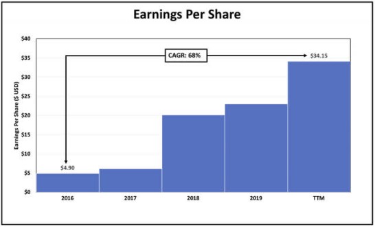 由于利润率的扩大,利润的增长已经超过了其营收的增长。因此,自2016年以来,亚马逊的每股收益以每年68%的速度增长。