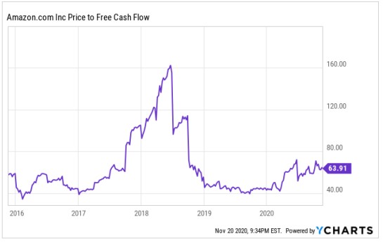 最后需要说明的是,虽然在最悲观的情况下,股价与自由现金流比率倍数为40倍可能会被认为非常高,但亚马逊的股价在过去五年(甚至十年)的几乎所有时间里都远高于40倍。