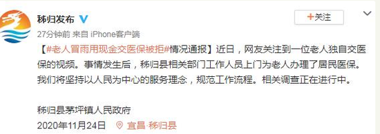 就在昨天,“八旬老人独自冒雨交医保被拒收现金”的话题窜上热搜。