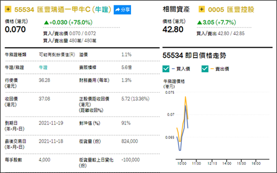 注意:权证(或牛熊证)投资风险巨大,可导致本金的全部损失。