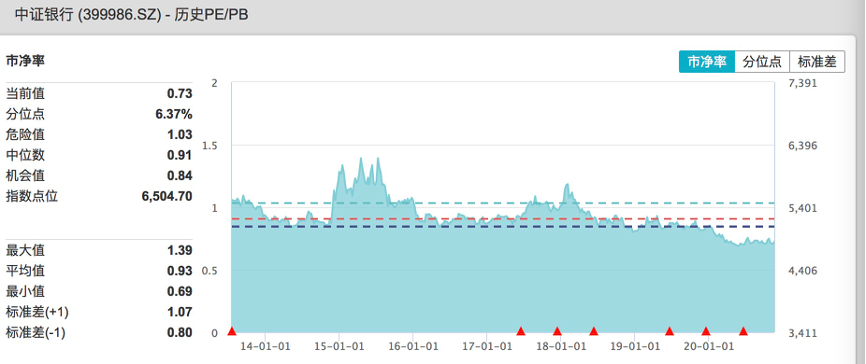 即使经历了这一波强势上涨,银行股的估值依然处于低位。目前,中证银行指数市盈率PE-TTM为6.61倍,处于近十年历史分位66.84%;市净率更是只有0.73倍。处于近十年历史分位6.37%,比历史上超过90%的时候都要低。(来源:wind,2020-11-19)