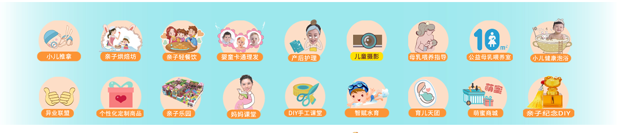 在可爱可亲的加盟官网上,记者注意到,可爱可亲共推出了18项特色项目,其中包括小儿推拿、智斌水育、亲子乐园、小儿健康泡浴等。